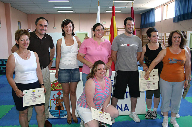 Los representantes municipales, que felicitaron a las 16 alumnas que han realizado el curso, que se ha impartido los martes y jueves del 13 de mayo hasta el 24 de junio, de cuatro y media a cinco y media o de ocho y cuarto a nueve y cuarto, hicieron entrega de los diplomas acreditativos, animando a estas mujeres a continuar con la práctica del ejercicio físico.