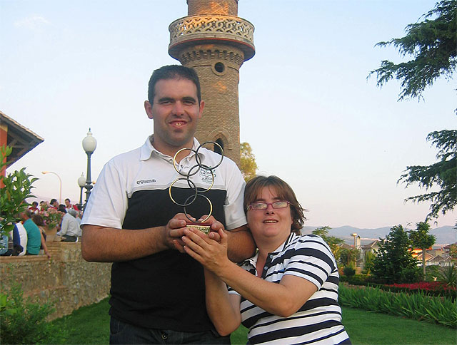 Mari Carmen Robles, que es campeona regional en 100 y 200 metros lisos, y Pedro Cánovas, campeón regional en los concursos de disco y jabalina, fueron seleccionados por la selección murciana de atletismo para personas con discapacidad intelectual para que acudieran a este campeonato.