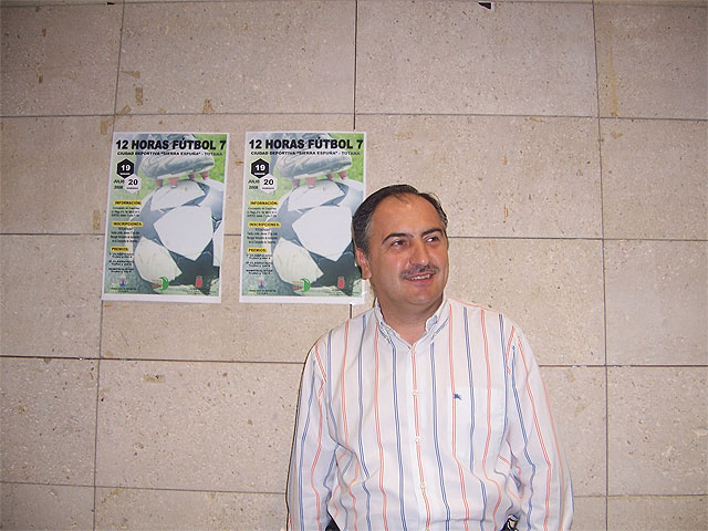 El concejal de Deportes, José Antonio Valverde Reina, ha presentado la competición “12 Horas de Fútbol” que se disputará por segundo año consecutivo en los cuatro campos de fútbol de la Ciudad Deportiva Sierra Espuña será nocturna y se llevará cabo entre los días 19 y 20 de julio.