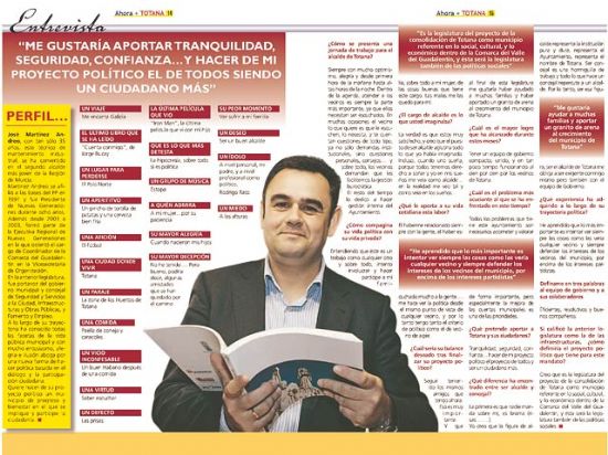 Añaden desde la coalición que "Martínez Andreo, vuelve a enrocarse, para mantenerse en un cargo que le viene grande, ante las críticas de la prensa regional, a la que no puede comprar ni amenazar y derrocha, a manos llenas, un dinero que a los vecinos y vecinas de Totana cada día le cuesta más ganar y pagar impuestos. Con un contenido pleno de propaganda barata y chabacana, decenas de fotos del "líder" y afirmaciones falsas, contando logros que no están ni comenzados. El PP vuelve a dar una imagen penosa en un sistema democrático, donde todos estamos sometidos al imperio de la Ley. Las páginas centrales de la publicación, las dedica el Gobierno Municipal a ensalzar la figura del Alcalde, con una entrevista plena de alabanzas, sin la mínima autocrítica ni referencia a los graves hechos acaecidos en Totana en los últimos meses y el paso por prisión de una alcalde, que se encuentra en libertad bajo fianza y señalado por las instituciones democráticas como un cargo público que dirige el Ayuntamiento como si se tratase de su cortijo, favoreciendo a los suyos y utilizando su cargo, para reprimir y perseguir a los que no piensan como él".