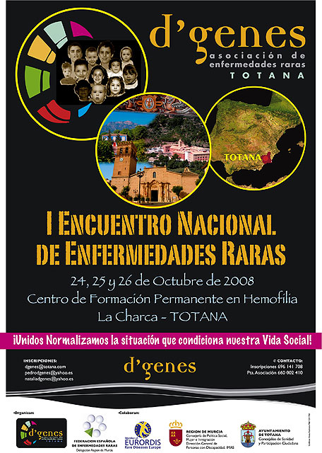 Totana acogerá, del 24 al 26 de octubre, el I Encuentro Nacional de Enfermedades Raras, en el que participarán por primera vez enfermos, familiares y profesionales relacionados con este tipo de patologías.