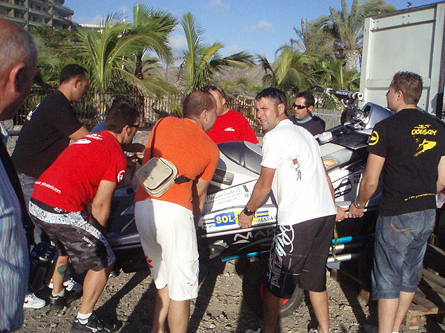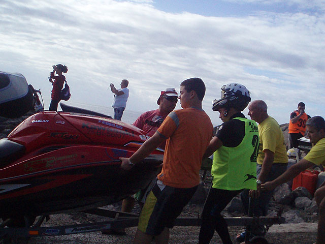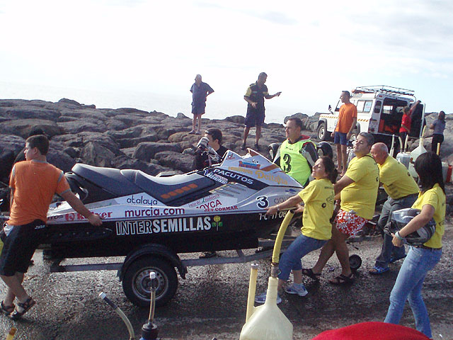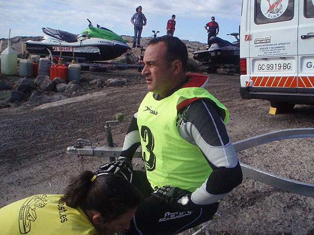 Francisco Sánchez, el otro participante de Totana en F2, se vió obligado a abandonar la carrera tras averiarse su máquina en la primera vuelta. El piloto de Totana estuvo más de tres horas en alta mar esperando al equipo de rescate que le llevara hasta la costa. Pese a su mala suerte en esta prueba, Francisco ha quedado tercero del Campeonato en su categoría.