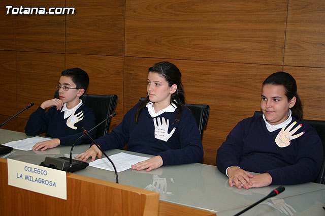 La concejal de Medio Ambiente, Trini Cayuela, en representación del alcalde de Totana, José Martínez Andreo, ha presidido un emotivo acto en el que 16 alumnos representantes de los distintos centros educativos de la localidad han aunado sus voces y han procedido a la lectura de un manifiesto con motivo de la celebración del “Día Internacional de los Derechos del Niño”.
