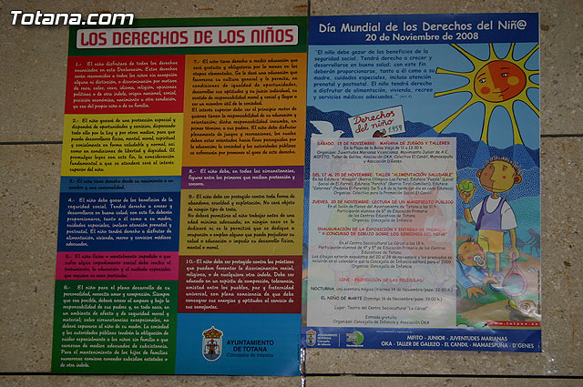 En este sentido, Trini Cayuela ha indicado que los derechos se reconocen a todos los niños del mundo, por ello, según ha afirmado la edil, este es un reto a largo plazo para cada país, cada institución, cada comunidad y cada individuo. Por este motivo, la concejal ha recordado que desde el Ayuntamiento de Totana se han programado una serie de actividades para promover diferentes actuaciones en relación a la sanidad, cultura, educación, entre otros.