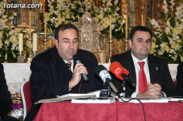 Los encargados de presentar esta publicación fueron el alcalde de Totana, José Martínez Andreo, y el presidente de la Fundación la Santa y párroco de la iglesia de Santiago, Francisco Fructuoso, y el coordinador de los cuadernos, Juan Cánovas Mulero, entre otras autoridades.