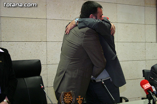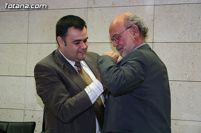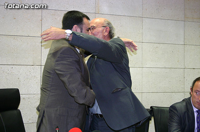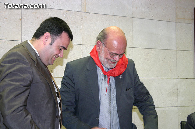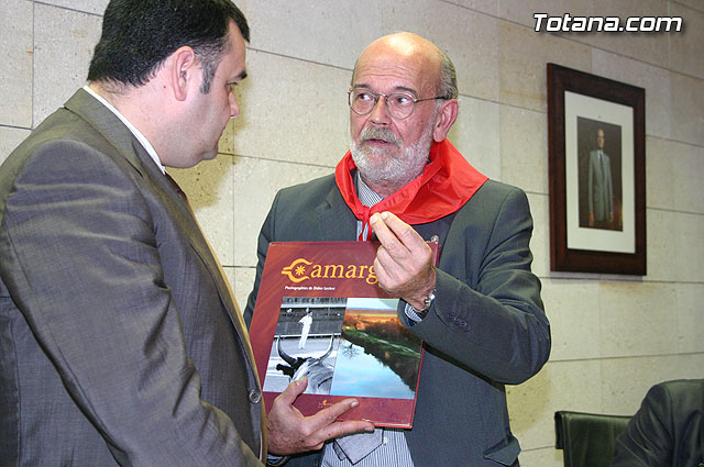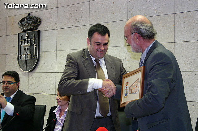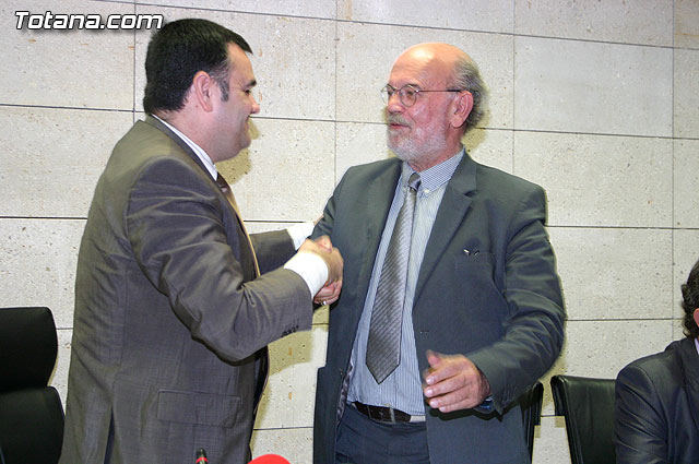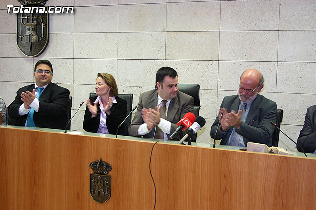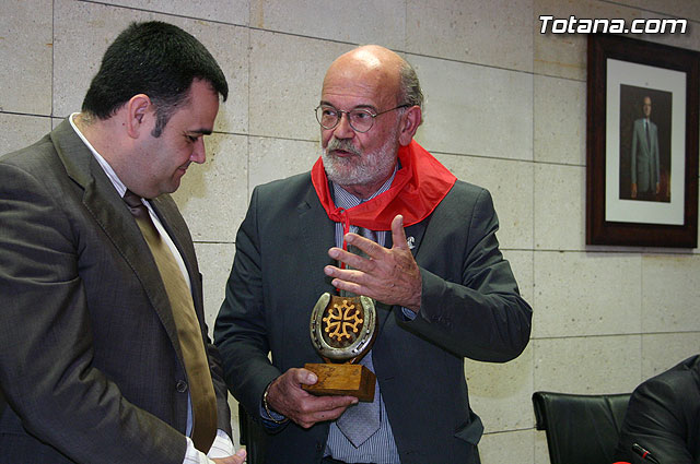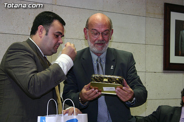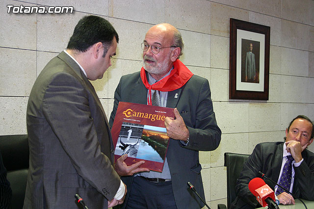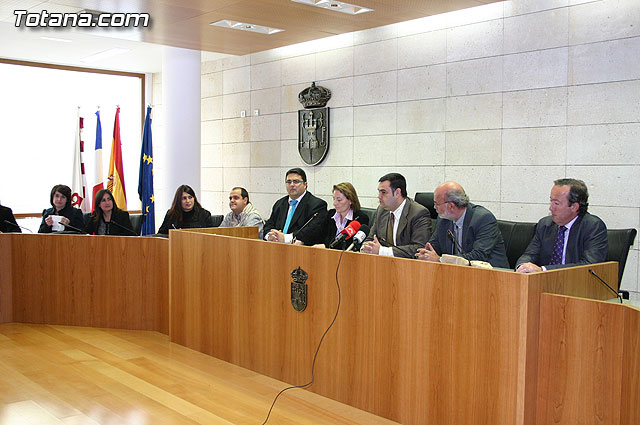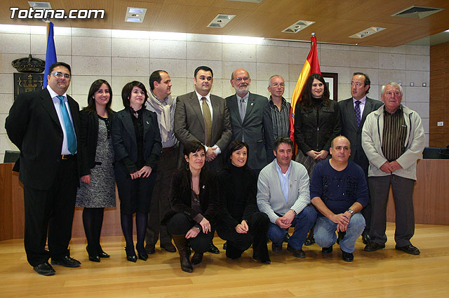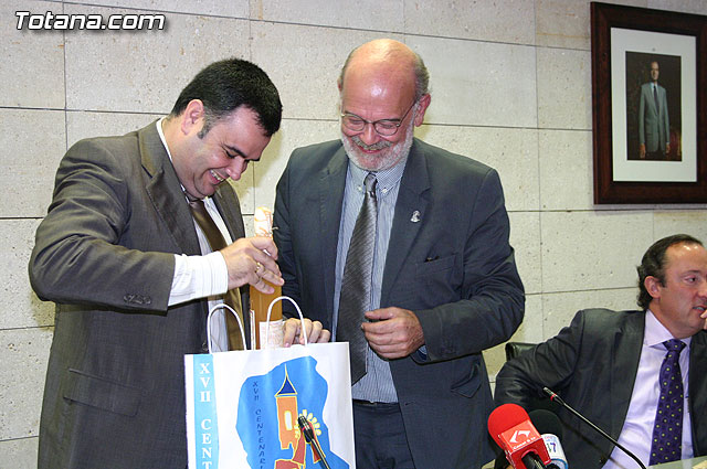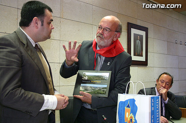 El alcalde de Totana, José Martínez Andreo, acompañado por más autoridades municipales, ha ofrecido una recepción institucional a una delegación institucional y cultural de la localidad francesa de Uchaud, representada por el alcalde de esta localidad, Christian Eymard, con motivo del hermanamiento que estas dos ciudades están llevando a cabo, y cuyo acto se formalizó ayer con motivo de esta visita institucional.