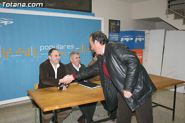 El diputado del PP en la Asamblea Regional, Martín Quiñonero y el diputado nacional del PP por Murcia, Vicente Martínez Pujalte, presentaron en la noche de ayer frente a más de cien afiliados y simpatizantes del partido que se congregaron en la sede local, los presupuestos regionales y nacionales. Ambos representantes políticos afirmaron de forma clara y contundente que el Gobierno regional “ni castiga ni castigará a Totana” y que el presidente de la Comunidad Autónoma, Ramón Luís Valcárcel, apuesta por el municipio y no arremete contra el alcalde de Totana, José Martínez Andreo, como se afirma desde la oposición.