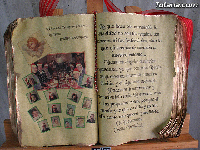 Los usuarios del Servicio de Apoyo Psicosocial, que atiende a personas con diagnóstico en salud mental, con el apoyo y dirección de la monitora del Taller de Artes Plásticas, Juana Belmonte, han realizado un innovador Belén de Navidad, que todos los vecinos de la localidad pueden visitar en la recepción de la parte nueva del Ayuntamiento entrando por la calle Mayor Sevilla.