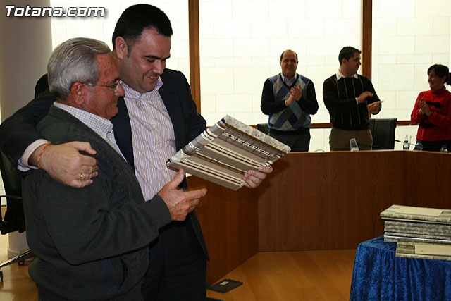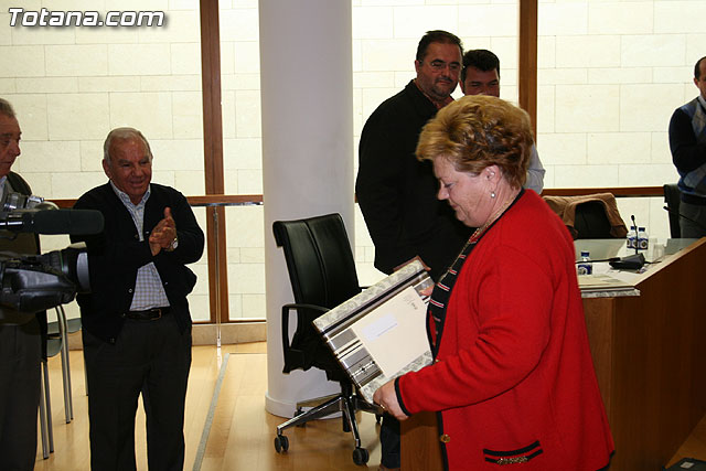 A través de esta moción, la Corporación Municipal ha expresado su reconocimiento a Juan Munuera Baños, José Pérez Cayuela, Antonio Cánovas García, Diego Tudela Moreno, Pura López Clemente, María Serrano, José Miguel Martínez Cayuela, Josefa Noguera Muñoz, Fernando Heredia Martínez, Antonia Cánovas Núñez y Catalina Molina Cánovas con motivo de su jubilación, y a modo de homenaje, el alcalde de Totana, ha procedido a la entrega de una placa conmemorativa a cada uno de ellos.