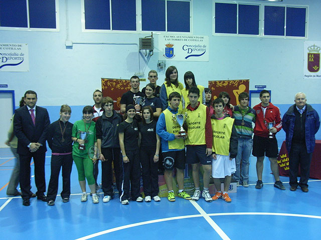 Por último, en categoría juvenil, el IES Prado Mayor acabó campeón regional en la modalidad de equipos, con Francisco Cánovas, Miguel Tárraga, Juan Daniel Sánchez, Ana Maria López e Isabel Sola. Estas dos últimas jugadoras también consiguieron el primer puesto en la modalidad de dobles.