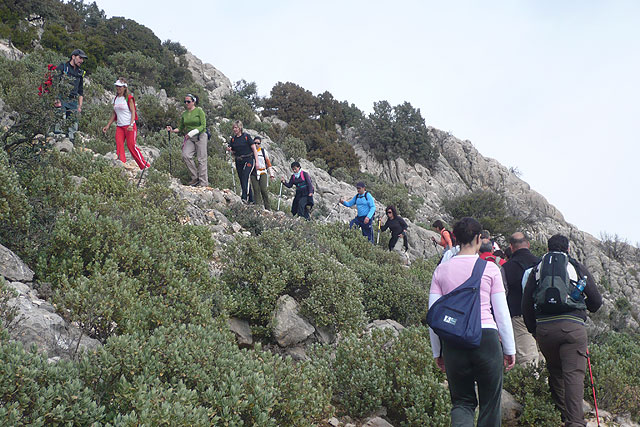 La Concejalía de Deportes organizó el pasado domingo una ruta de senderismo por la espectacular senda del Caracol en el Paraje Natural de Sierra Espuña en la que participaron 22 senderistas dirigidos por el técnico en medio ambiente Javier Ramírez que deleitó con las explicaciones de historia, flora y fauna.
