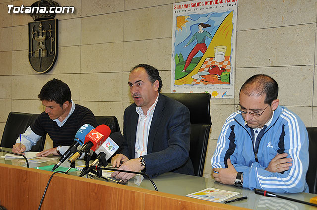 El concejal de Deportes, José Antonio Valverde Reina, acompañado por representantes de la comunidad escolar de Educación Física de la localidad, han presentado la “Semana de la Salud y la Actividad Física” de Totana, donde un total de 1.500 alumnos del 3º Ciclo de Primaria y 1º Ciclo de Secundaria de los centros educativos del municipio participarán desde el día 22 al 27 de marzo.