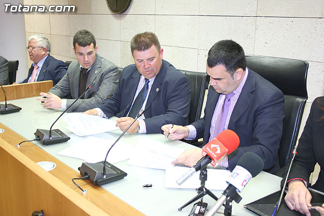 El alcalde de Totana, José Martínez Andreo, y el presidente del Ilustre Cabildo Superior de Procesiones, Juan María Zamarreño, han firmado el convenio de colaboración con un importe de 51.000 euros para organizar todas las procesiones de la Semana Santa de Totana 2009.
