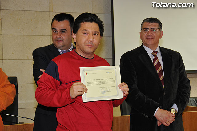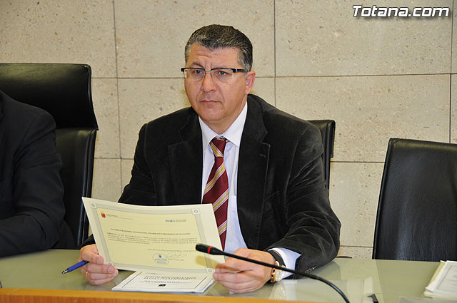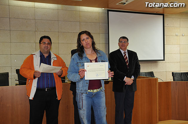 El alcalde de Totana, José Martínez Andreo, el concejal de Bienestar Social, Juan Carrión, y el director general de Pensiones, Valoración y Programas de Inclusión del Instituto Murciano de Acción Social (IMAS), Juan Castaño, han hecho entrega esta mañana de los diplomas del curso de “Estrategias de autonomía personal y desarrollo de habilidades sociales y laborales” en el que 13 personas se han formado para favorecer su promoción social y facilitar la inserción sociolaboral por medio del aprendizaje de habilidades sociales.