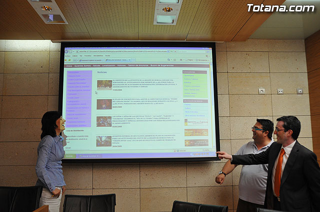 La concejal de Juventud, Josefa María Sánchez Méndez, el concejal de Nuevas Tecnologías, Juan Carrión, y el gerente de la empresa “Totana.com”, Juan Antonio Cánovas, han presentado el nuevo portal de Juventud del Ayuntamiento de Totana, que nace con el objetivo de ofrecer un espacio virtual a través del cual los visitantes podrán encontrar una amplia y variada información sobre los recursos y servicios dirigidos a la población juvenil del municipio.