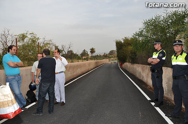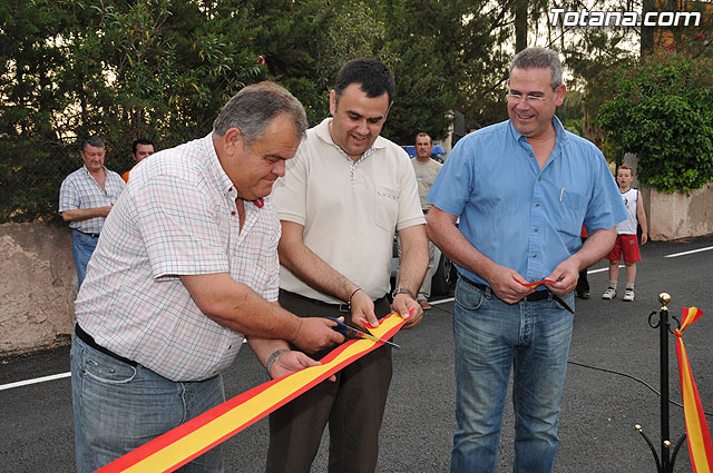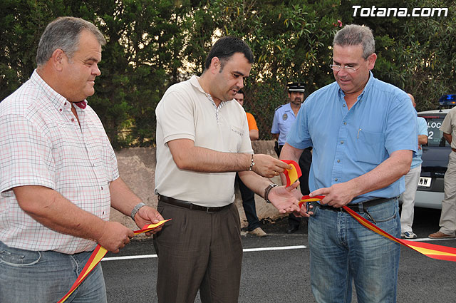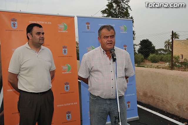 El alcalde de Totana, José Martínez Andreo, el concejal de Caminos y Pedanías, Juan Pagán, vecinos de la zona de Los Huertos, en la diputación de Mortí, y más miembros del equipo de Gobierno inauguraron en la tarde de ayer la remodelación de los cuatro caminos que han sido asfaltados en la zona.