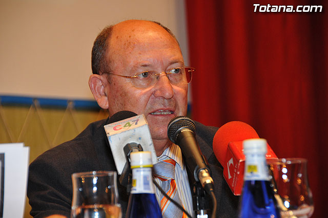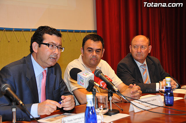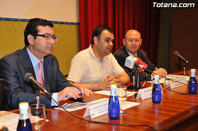El alcalde de Totana, José Martínez Andreo, el alcalde de Alhama de Murcia, Juan Romero, acompañados por los ediles de Fomento y Empleo de sendas localidades y el responsable de información de la Red PuntoPyme del Instituto de Fomento de la Región de Murcia, Juan Antonio Gutierrez, inauguraron el Foro de Promoción de Negocios “Contratación administrativa: la administración como cliente”.