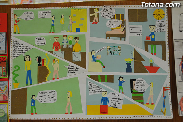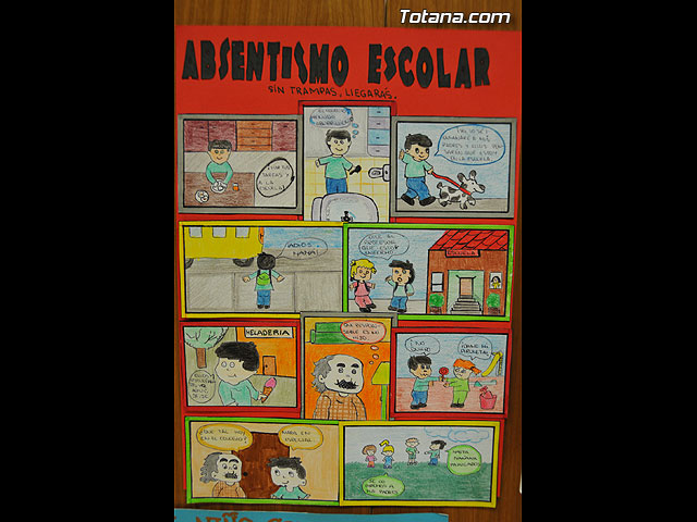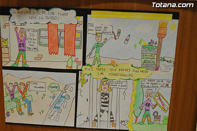 Al respecto, la edil destacó que el aspecto más representado por los alumnos ha sido el de las actuaciones que se llevan a cabo por parte de la Policía Local del municipio, ya que numerosos cómics presentados a concurso han reflejado en sus viñetas diferentes historias en las que se le ha otorgado un papel principal al cuerpo de la Policía Local de Totana que colabora de forma activa contra el fenómeno del absentismo escolar.
