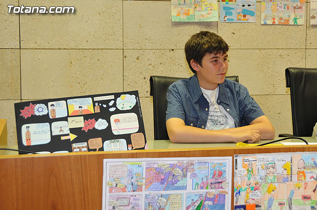 La concejal de Educación, Trini Cayuela, entregó los premios del “Concurso de Cómics contra el Absentismo Escolar”, enmarcado en la Campaña de Sensibilización del Absentismo Escolar, llevada a cabo desde el Servicio Municipal de Prevención y Control del Absentismo Escolar, en el que han participado 60 alumnos de 1º y 2º de Educación Secundaria Obligatoria de todos los centros del municipio.