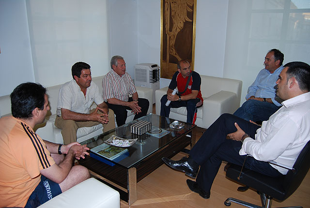 El alcalde de Totana, José Martínez Andreo, y el concejal de deportes, José Antonio Valverde Reina, se reunieron con el presidente del Club, Francisco Cánovas, y más representantes del equipo para desarrollar el proyecto para apoyar de forma institucional y económica el ascenso de este club del municipio a la categoría A (hasta el momento el equipo militaba en Primera Nacional B).