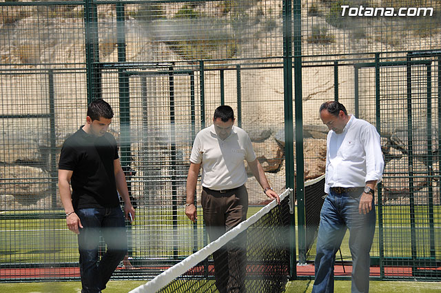 El alcalde de Totana, José Martínez Andreo, y los concejales de Deportes, José Antonio Valverde, y Servicios y Mantenimiento Integral de la Ciudad, Sergio López, han visitado las nuevas obras de la segunda fase de la Ciudad Depotiva “Sierra Espuña”, que comprenden las dos pistas de pádel, la rampa de acceso a minusválidos, la instalación del alumbrado público, la pavimentación de los anexos y los trabajos de jardinería, que ya están finalizados.