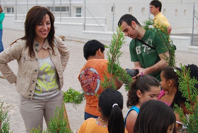 El programa de actividades organizado por la Concejalía de Medio Ambiente con motivo del Día Mundial de Medio Ambiente, continúa con la plantación de especies en los centros escolares, dirigido a los alumnos de 6º de Primaria de los colegios “San José”, “Luis Pérez Rueda” y “Deitania”. Concretamente, esta mañana se ha llevado a cabo esta plantación en el colegio Luis Pérez Rueda, que ha contado con al presencia de la concejal de Medio Ambiente, Trini Cayuela.