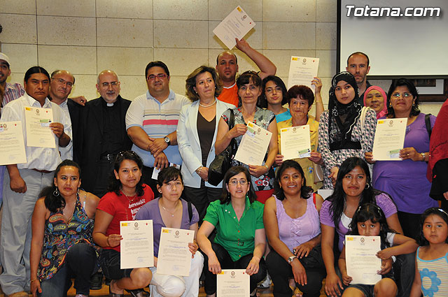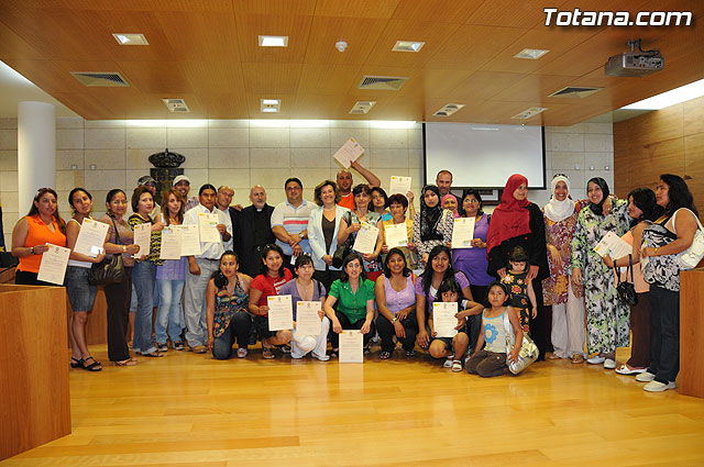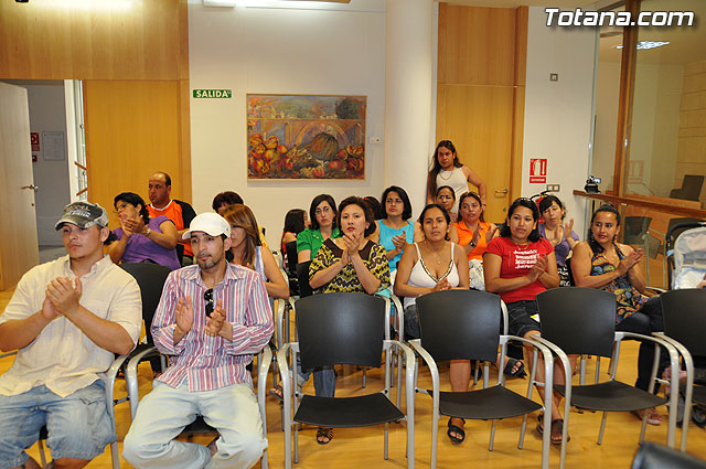 Durante la entrega de los diplomas y los carnés de manipulador de alimentos, la coordinadora del proyecto, Juana Mª Morillas, explicó que las jornadas han sido impartidas por profesionales de la Universidad Católica San Antonio, UCAM, y han contado con la financiación de la Dirección General de Inmigración de la Consejería de Política Social, Mujer e Inmigración.