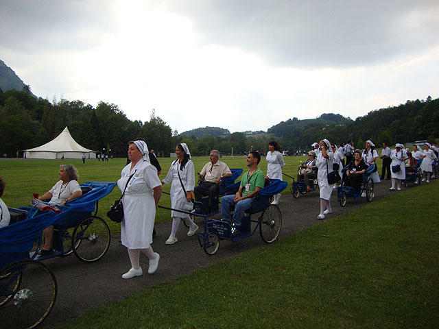 Un año más, la delegación de la Hospitalidad de Lourdes de Totana, ha peregrinado a la población francesa de Lourdes, donde se encuentra el santuario de la Virgen. Un total de 60 miembros de la delegación de Totana han acompañado durante cinco días, del 25 al 30 de junio, a siete enfermos que han peregrinado a la Gruta para participar en las actividades que durante las convivencias internacionales se realizan en el lugar.