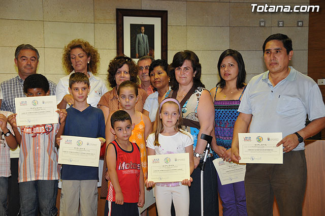 El concejal de Nuevas Tecnologías, Juan Carrión, junto con la profesora de informática, hicieron entrega de los diplomas a los alumnos del Proyecto RAITOTANA, en el que durante el primer semestre del año 2009 se han formado casi 300 personas.