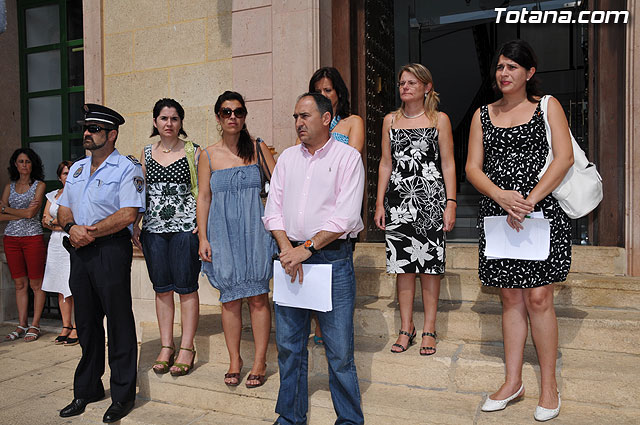 El Ayuntamiento de Totana se ha concentrado esta mañana para guardar cinco minutos a las puertas del Consistorio, como repulsa al atentado de ETA y manifestar su “más absoluta condena” al asesinato de los dos Guardias Civiles, Carlos E. Sáenz de Tejada y Diego Salvá, perpetrado ayer por la banda terrorista ETA en Calaviá (Mallorca).