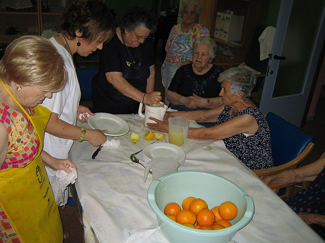 Para ello los usuarios del SED, acompañados por los auxiliares de dicho centro, fueron de compras por el mercado semanal en busca de los mejores limones y azúcar, ingredientes con los que se elabora esta refrescante bebida, y tras las compras realizaron el “agua limón”, como se dice en Totana, de una manera tradicional, raspando la corteza del limón y escurriendo éstos en los esgrimidores.