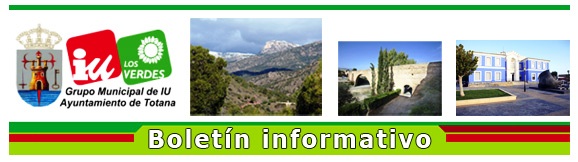 A partir del mes de septiembre, el Grupo Municipal de IU + Los Verdes, editará un Boletín Electrónico "para informar sobre la actividad municipal y las noticias que generan los concejales de la Formación de Izquierdas en el Ayuntamiento de Totana". Pretenden poner en marcha un vehículo de información directa, a través de la red, "dado que la mayoría de medios de comunicación en Totana, silencian o recortan las noticias generadas por la Oposición Política en el Ayuntamiento, así como su opinión", según la coalición de izquierdas.