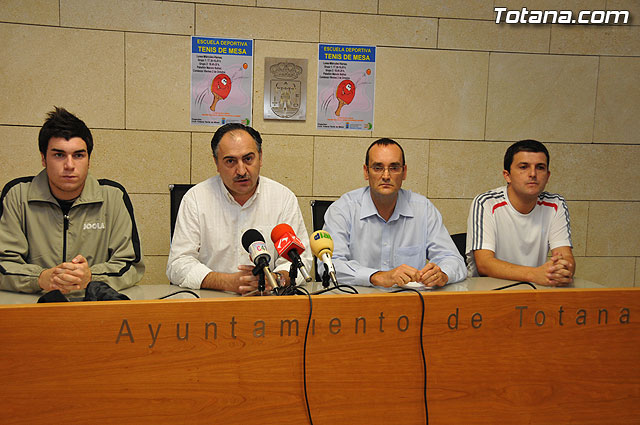 Así lo han anunciado el concejal de Deportes, José Antonio Valverde Reina, el técnico deportivo Jesús Serrano, el presidente del Club de Tenis de Mesa, Domingo Méndez, y el monitor de este club, que han dado a conocer el nuevo sistema de gestión de esta escuela deportiva, que se materializará en virtud de un convenio suscrito entre ambas entidades con el fin de consolidar esta práctica deportiva en el municipio de Totana.