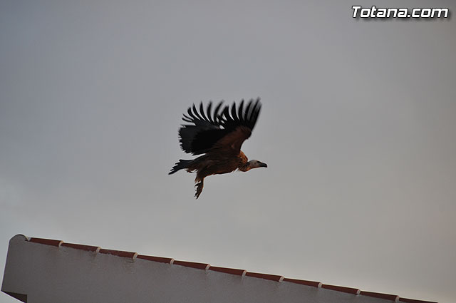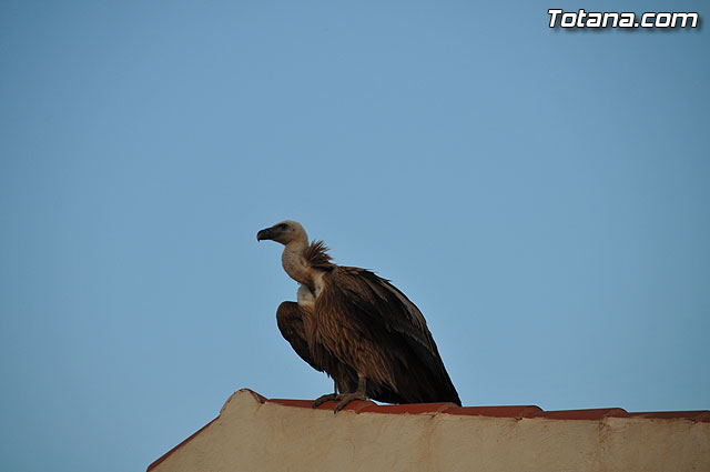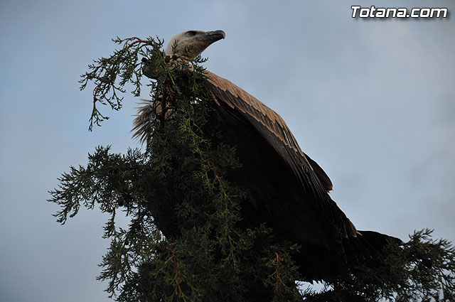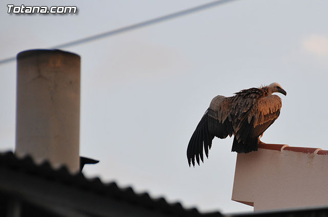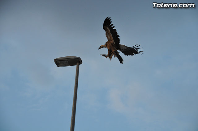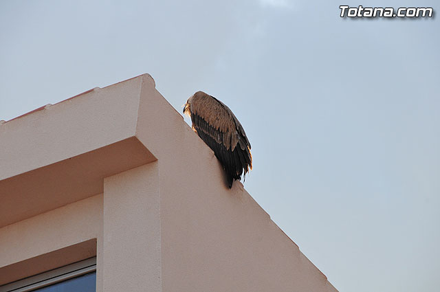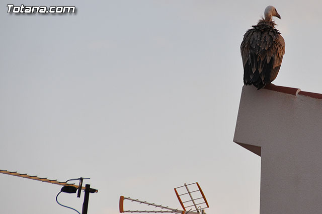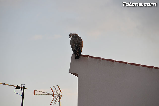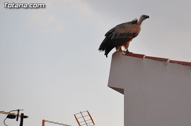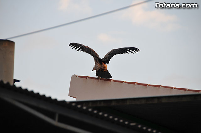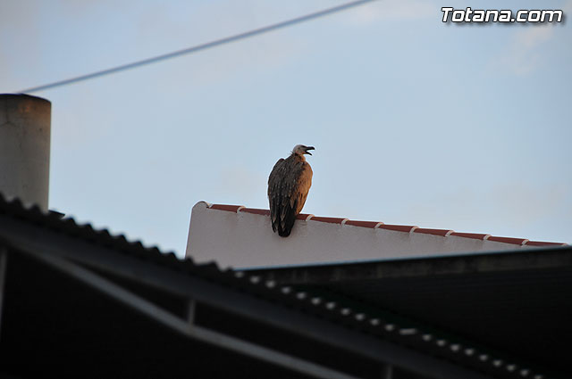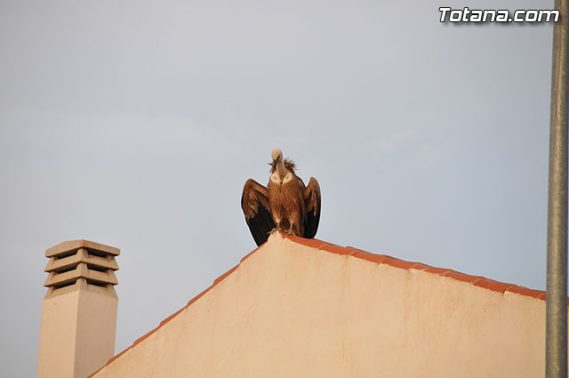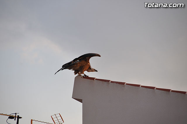 Se trataba de un buitre leonado que fue avistado en el tejado de la hermandad de Jesús en el Calvario y Santa Cena. Tras largo rato posado en el tejado, el ave emprendió el vuelo yéndose hacia la zona de La Ramblica, donde se volvió a posar para marcharse otra vez rumbo a un bosquecillo en la zona. Se posó en un árbol y luego en el suelo, donde un intrépido fotógrafo trató de atraparlo, lo que consiguió tras varios intentos. Ante la imposibilidad de retenerlo por mucho tiempo y tras algún que otro picotazo, lo dejó en libertad.