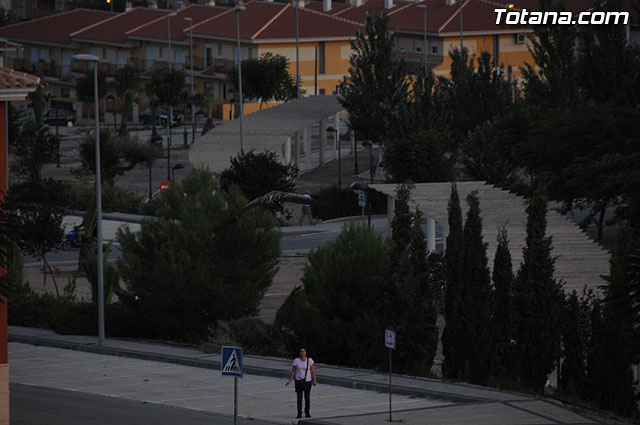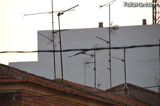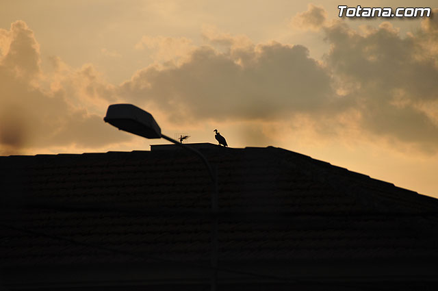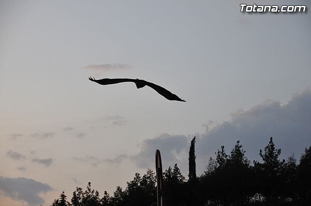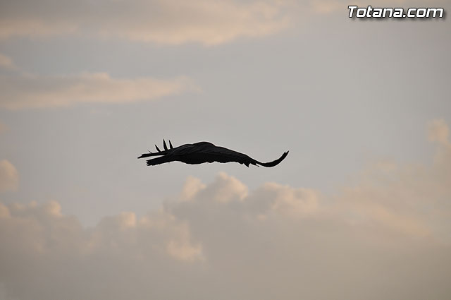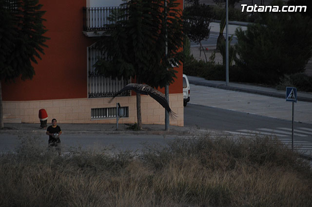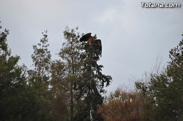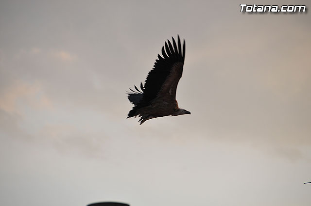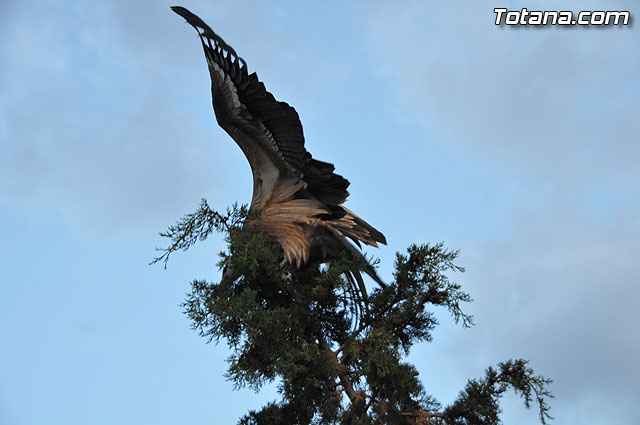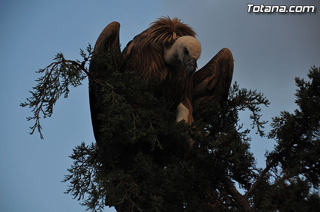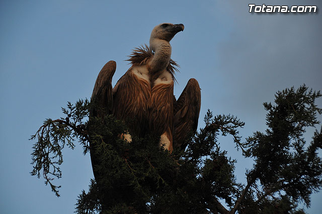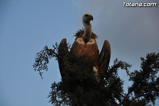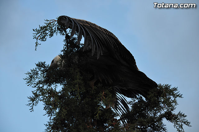 Se trataba de un buitre leonado que fue avistado en el tejado de la hermandad de Jesús en el Calvario y Santa Cena. Tras largo rato posado en el tejado, el ave emprendió el vuelo yéndose hacia la zona de La Ramblica, donde se volvió a posar para marcharse otra vez rumbo a un bosquecillo en la zona. Se posó en un árbol y luego en el suelo, donde un intrépido fotógrafo trató de atraparlo, lo que consiguió tras varios intentos. Ante la imposibilidad de retenerlo por mucho tiempo y tras algún que otro picotazo, lo dejó en libertad.