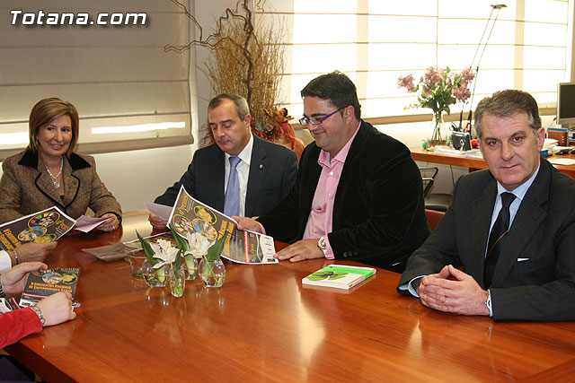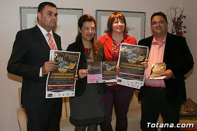 El alcalde de Totana, José Martínez Andreo, acompañado de los concejales de Sanidad y Bienestar Social, Trini Cayuela y Juan Carrión, y junto a la presidenta de la Asociación “D´Genes”, Naca Pérez de Tudela, han presentado a la consejera de Sanidad, María Ángeles Palacios, el programa del II Encuentro Nacional de Enfermedades Raras (ER) que se celebrará del 27 al 9 de noviembre en el Centro de Formación Permanente en Hemofilia “La Charca”.