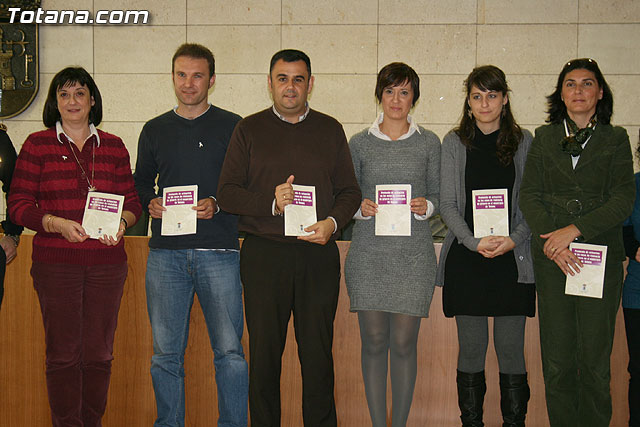 El alcalde de Totana, José Martínez Andreo, y la concejal de Mujer e Igualdad de Oportunidades, Josefa María Sánchez Méndez, han presentado el documento del “Protocolo de actuación en los casos de violencia de género en el municipio”, que ha sido elaborado por todos los profesionales, agentes sociales y Cuerpos y Fuerzas de Seguridad del estado del municipio implicados en esta problemática, que han estado presentes en este acto.