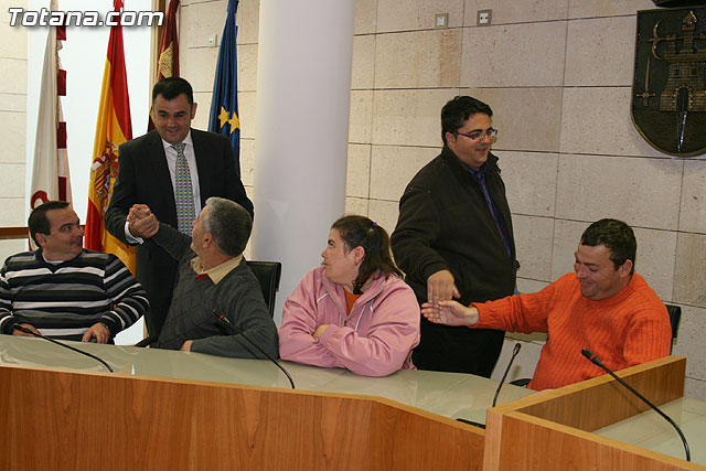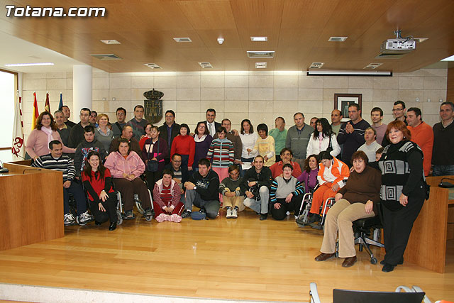 El alcalde de Totana, José Martínez Andreo, y el concejal de Bienestar Social, Juan Carrión Tudela, han realizado una recepción institucional en el salón de Plenos del Ayuntamiento, a los 32 alumnos, familiares y al equipo profesional del Centro Ocupacional “José Moya” de la localidad, con motivo de la conmemoración del Día Internacional de las Personas con Discapacidad, que se celebra mañana jueves día 3 de diciembre.