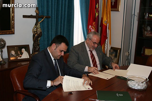 El alcalde de Totana, José Martínez Andreo, y el presidente de la Universidad Católica San Antonio de Murcia (UCAM), José Luis Mendoza Pérez, han suscrito un convenio de colaboración para la realización de actuaciones en la Ciudad Alimentaria del Mediterráneo (CiAMed) relacionadas con la investigación y la docencia en el ámbito alimentario que darán lugar a la puesta en marcha del futuro Campus de la Alimentación del Mediterráneo.