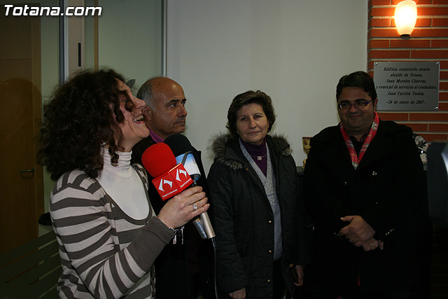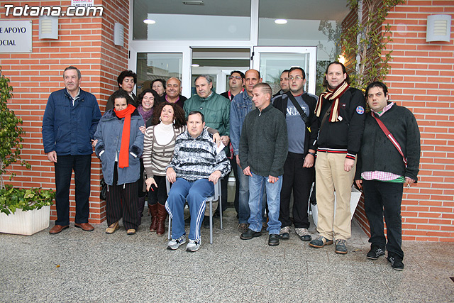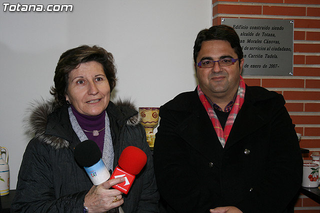 El concejal de Bienestar Social, Juan Carrión, junto con los responsables del Servicio de Apoyo Psicosocial, y los artesanos Mercedes y Juan María “El Poveo” y la presidenta de la Asociación de Artesanos de Totana, Rosa Sáez, han inaugurado la muestra de artesanía que los usuarios de este servicio municipal han realizado junto con los artesanos.