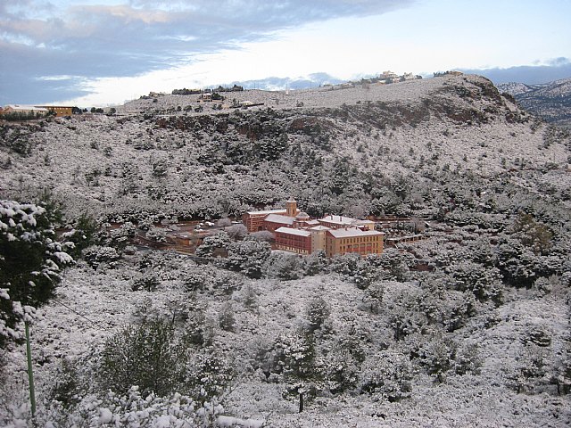 La nieve, que ha registrado la cota más baja de todo el invierno, ha cuajado a partir de la pedanía de Mortí, a unos 300 metros aproximadamente de altitud, y ha cubierto todo el paraje del Santuario de La Santa, Aledo y Sierra Espuña.
