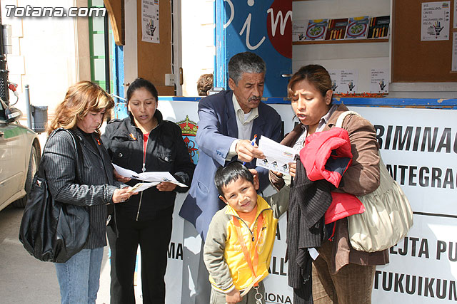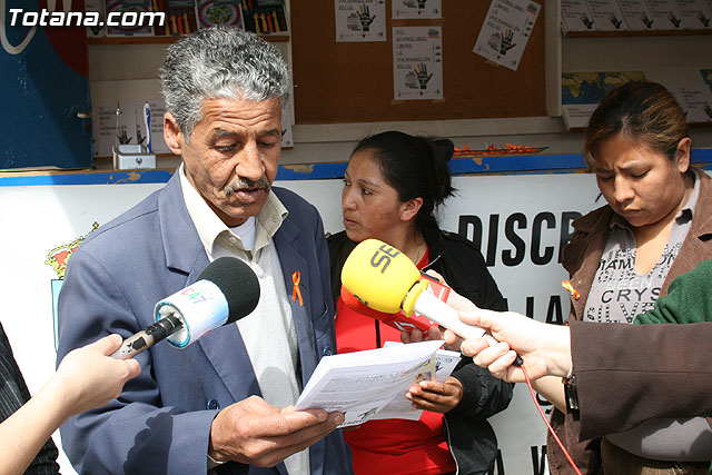 El concejal de Bienestar Social y Participación Ciudadana, Juan Carrión, junto con representantes de distintas asociaciones de inmigrantes del municipio han procedido a la lectura de un manifiesto para conmemorar el Día Internacional contra la discriminación racial, que se celebró ayer domingo día 21 de marzo.