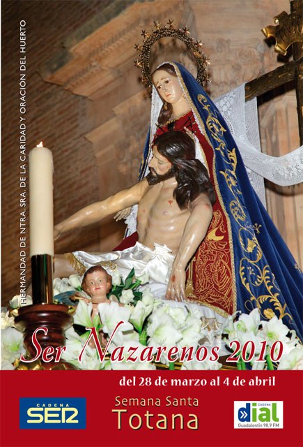 La Hermandad de Nuestra Señora de la Caridad y la Oración en el Huerto, protagoniza la portada de SER Nazarenos 2010, una publicación gratuita editada por Cadena SER y Cadena Dial Guadalentín, que ya está a disposición de todos los totaneros y totaneras y que un año más, recoge los momentos más hermosos de la Semana Santa de Totana con espectaculares fotografías a todo color.