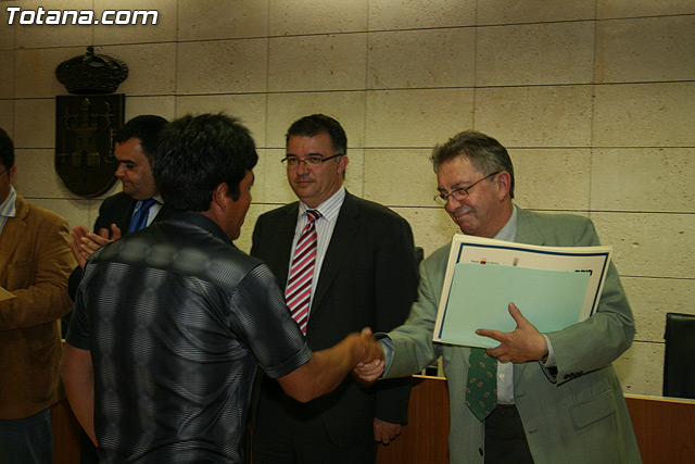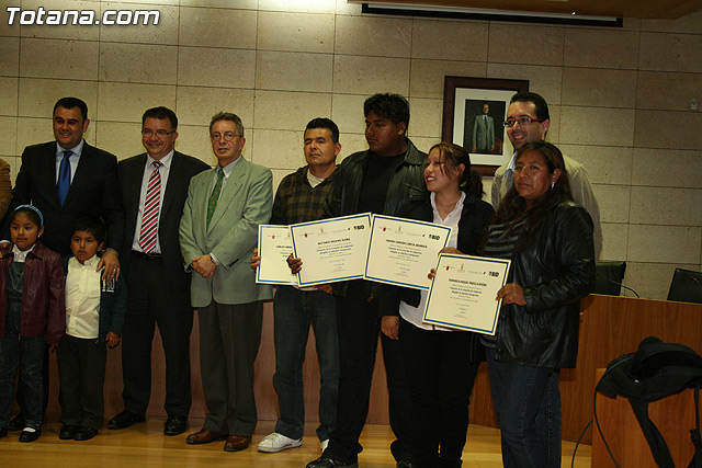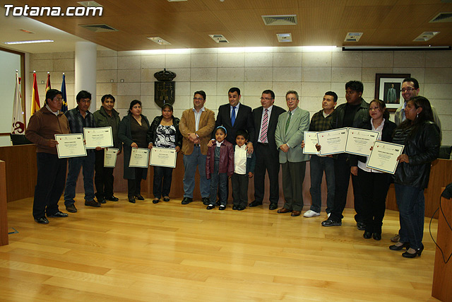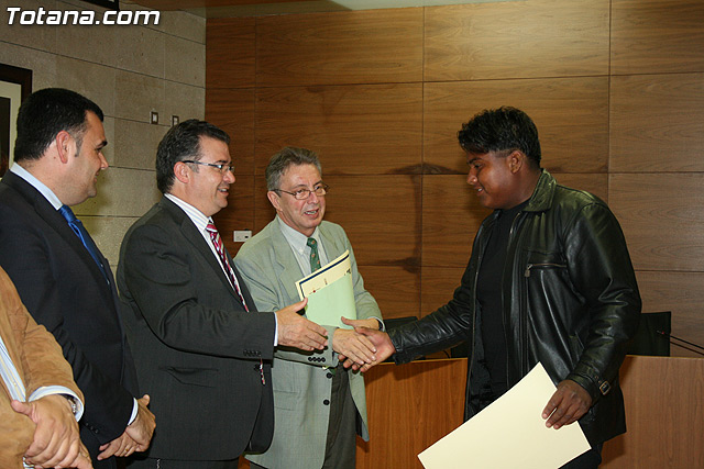 Los alumnos recibieron de manos del alcalde de Totana, José Martínez Andreo, y el director general de Inmigración, Leopoldo Navarro, el concejal de Bienestar Social, Juan Carrión, el director del programa, Ángel López, los alumnos acreditativos del curso.