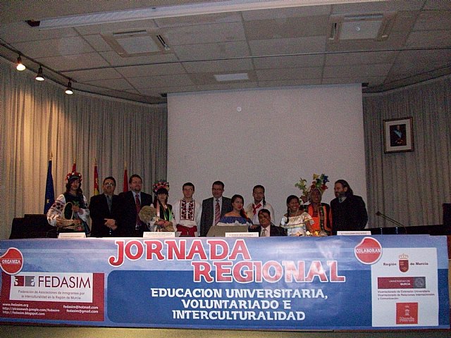 El concejal de Bienestar Social y Participación Ciudadana, Juan Carrión, participó en la Jornada Regional “Educación Universitaria, Voluntariado e Interculturalidad”, organizada por la Federación de Inmigrantes de la Región de Murcia, que tuvo lugar en el paraninfo de la Universidad de Murcia.