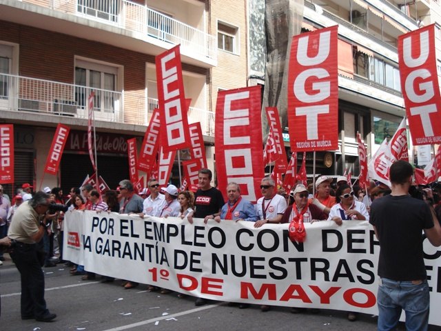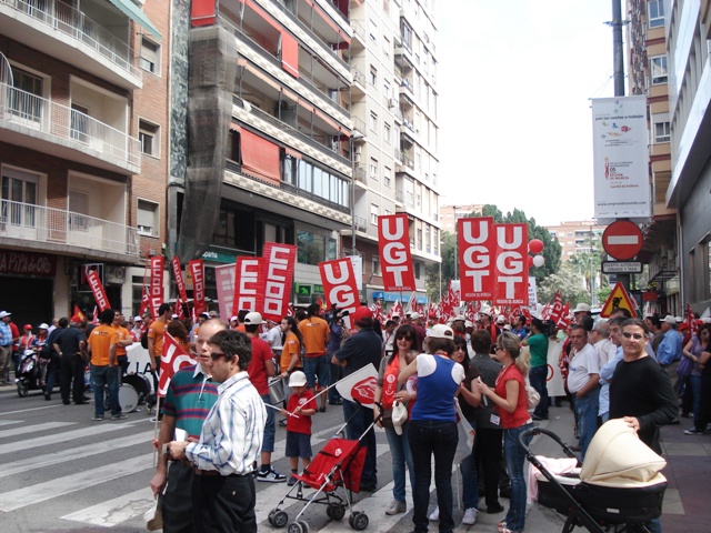 Una nutrida representación de IU en Totana, así como delegados sindicales y miembros de los Comités de Empresa en el municipio, asistieron a la manifestación, uniéndose a las reivindicaciones sindicales. "Las cifras de paro o la destrucción de empresas en el municipio, son las principales preocupaciones de CC.OO. y de IU en Totana, agravada por los casos de corrupción salpicado por dirigentes del PP", aseguran desde la formación de izquierdas.