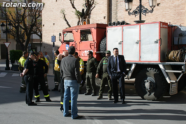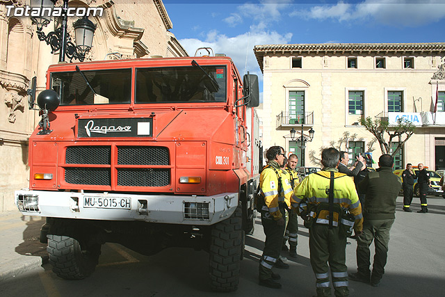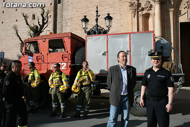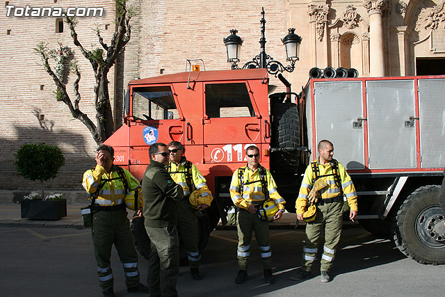 El alcalde de Totana, José Martínez Andreo, y el concejal de Seguridad Ciudadana, Roque Molina, junto a miembros de los retenes forestales y de Protección Civil han dado a conocer el dispositivo de emergencias y el retén de vigilancia forestal para llevar a cabo el Plan Infomur 2010 que se activó el pasado 16 de abril y permanecerá hasta la primera quincena del mes de octubre, con el fin de controlar y evitar posibles incendios que amenacen el parque natural de la Sierra durante los próximos meses del verano.
