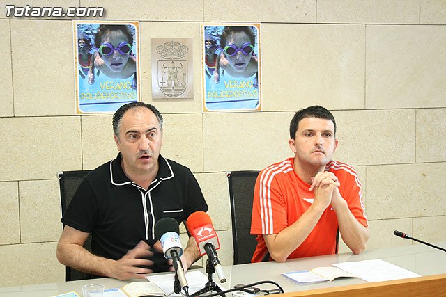 El concejal de Deportes, José Antonio Valverde Reina, y el técnico deportivo, Jesús Serrano, han presentado el amplio programado programa de actividades deportivas enmarcadas en el “Verano Polideportivo 2010” dirigidas a niños, jóvenes y adultos, y que comenzarán el próximo mes de julio, en las instalaciones municipales del Polideportivo “6 de Diciembre” y el complejo deportivo “Valle del Guadalentín” del Paretón.