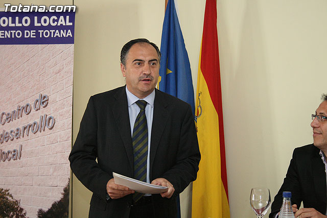 La jornada también ha sido inaugurada por el concejal de Desarrollo Económico y responsable de la organización de este foro de debate, José Antonio Valverde Reina, el presidente de la Federación Nacional de Profesionales del Desarrollo Local, Javier González, y el presidente de la asociación de Agentes de Desarrollo local de la Región de Murcia (ADELES CARM), Juan de Dios González.