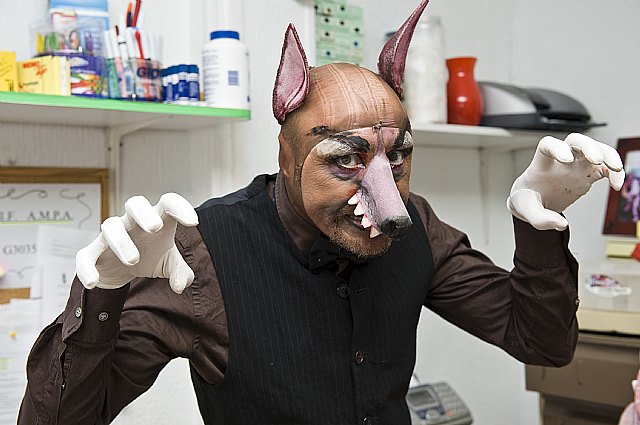 No se ha tratado solo de contar un cuento sino que han sido los mismos profesores los que han elaborado el guión (que varía un poco con el original, ej. El Lobo no se come a Caperucita, etc..), el escenario (que simula un castillo, realizado con material desechable) así como han caracterizado a los personajes del cuento (con el consiguiente vestuario, maquillaje y escenario correspondientes).